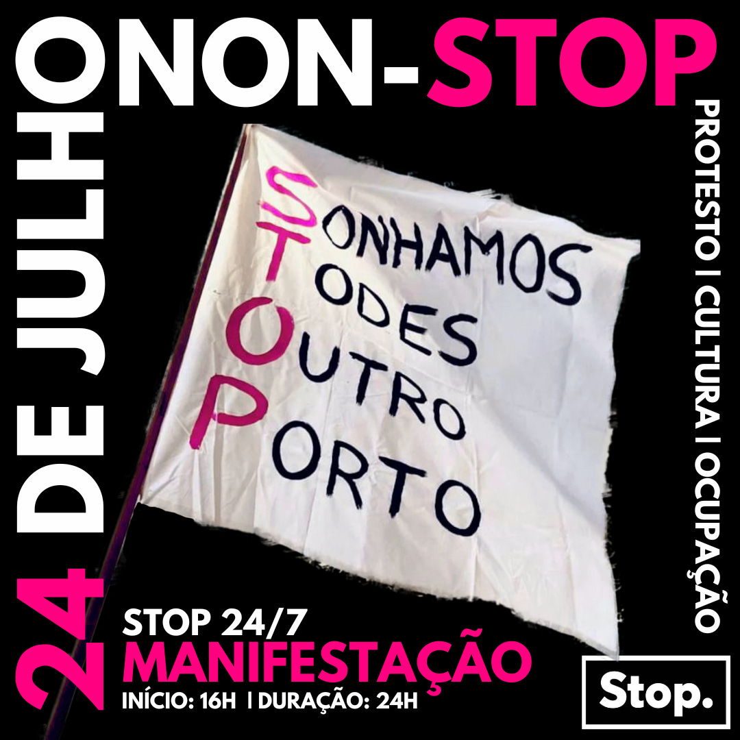 No dia 24 pretendemos reunir e manifestar a nossa união, empenho e vontade de ter uma cidade com cultura acessível para todos, em destaque 24/7 no STOP!